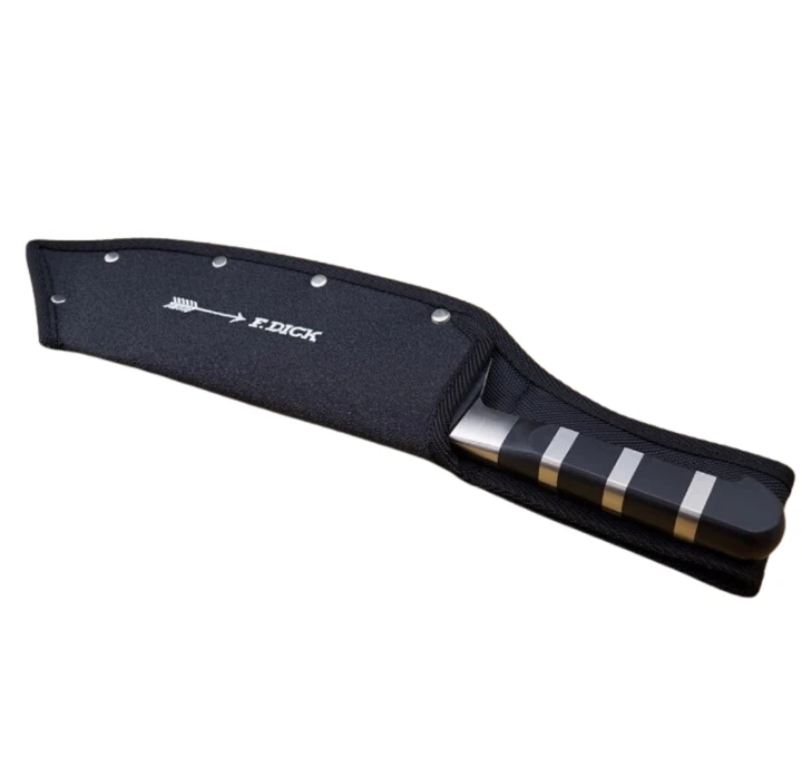 Deze messenhouder van F-Dick is de perfecte accessoire voor het Ajax koksmes uit de 1905 -serie. De huls is exact afgestemd op de vorm van het mes en zorgt zo voor een optimale bescherming voor het mes. Door de royaal ontworpen lus kan de hoes eenvoudig aan elke riem worden bevestigd. Of het nu thuis is bij de BBQ of onderweg tijdens een evenement, het Ajax koksmes is optimaal opgeborgen en altijd bij de hand.
