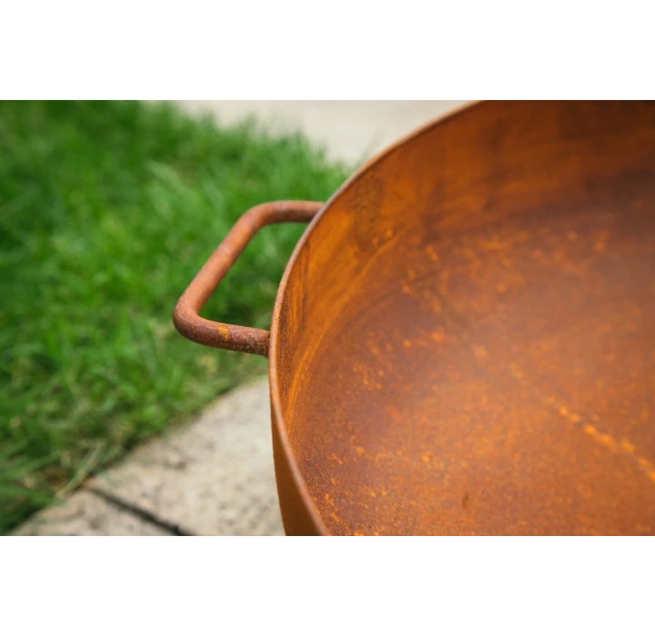 Dit product is gemaakt van staal en heeft de neiging te roesten onder invloed van vocht en zuurstof. Het doel van de zorg is vooral het vermijden van roest. Om roest effectief te voorkomen mag de vuurschaal niet meer in de regen staan dus altijd wegzetten na gebruik en behandelen met olie. Herhaal de behandeling met olie regelmatig voor langdurige bescherming. Geschikt voor dit doel zijn bijvoorbeeld koolzaadolie, lijnzaadolie of reuzel.Â