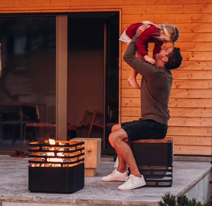 Vuurkorf, grill en buitenmeubel – CUBE is een echte allrounder. Met het grillrooster & plancha tover je de meest uiteenlopende lekkernijen tevoorschijn: van sappige steaks en worstjes over malse vis en zeevruchten tot vegetarische en veganistische lekkernijen. De grillhoogte kan trapsgewijs worden geregeld via de uitsparingen in de vuurkorf om de juiste warmte te verkrijgen. Als het koud is, kan de CUBE omgedraaid en met behulp van de optionele oplegplank als kruk, bankelement of bijzettafel worden gebruikt.