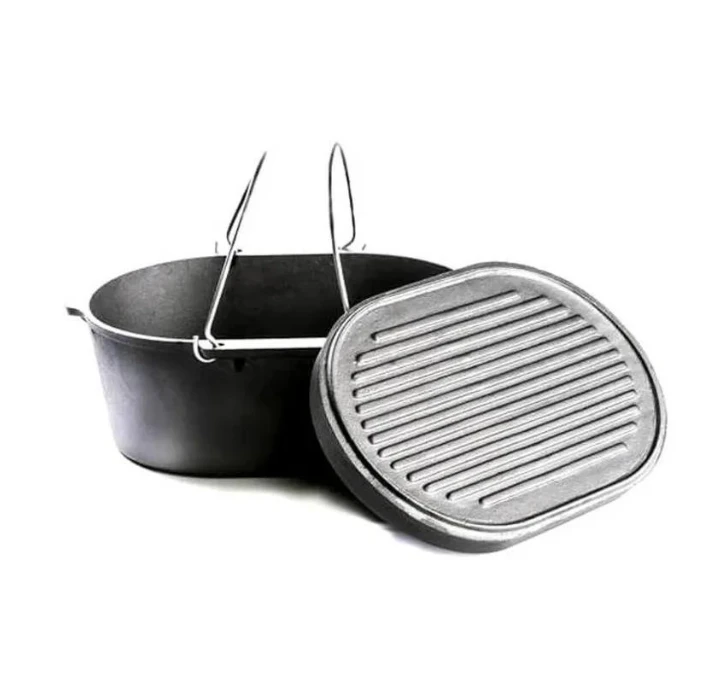 Valhal Outdoor Dutch Oven Ovaal 7.9 quarts / 9 liter met Grillplaat zonder pootjes